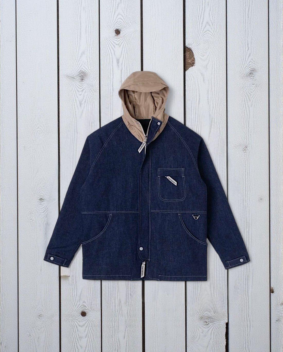 A denim jacket with a nylon hood is a stylish hybrid piece that combines the rugged, casual vibe. weather-resistant functionality of nylon Hood.