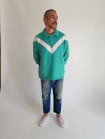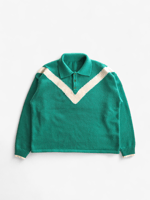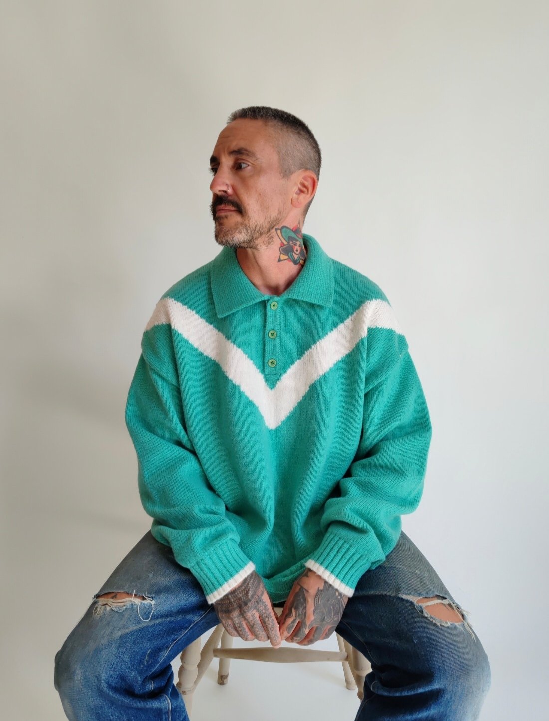 The Eric Mohair jersey ( Named after my father in-law), inspired by a vintage-style rugby jersey, blends nostalgic charm with modern comfort. Crafted from luxuriously soft mohair yarn, it channels the bold stripe, structured 3 button collar, and relaxed fit reminiscent of classic pitch-side wear from decades past. While the original rugby jerseys were built for durability and sport, this reinterpretation leans into cozy sophistication,