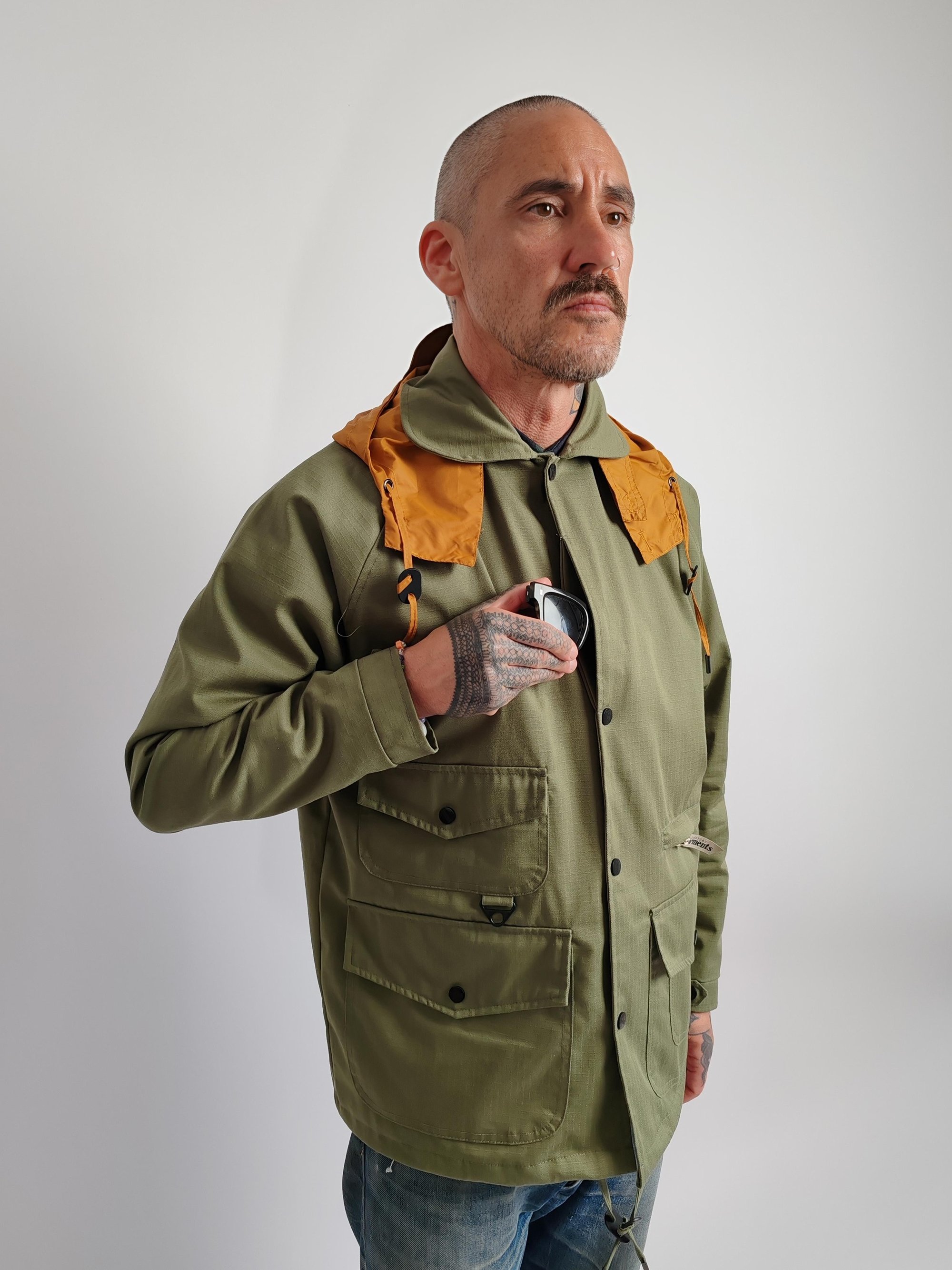The 5-pocket field jacket blends classic military inspiration with contemporary functionality. Crafted from Ripstop fabric and a Nylon fabric hood.