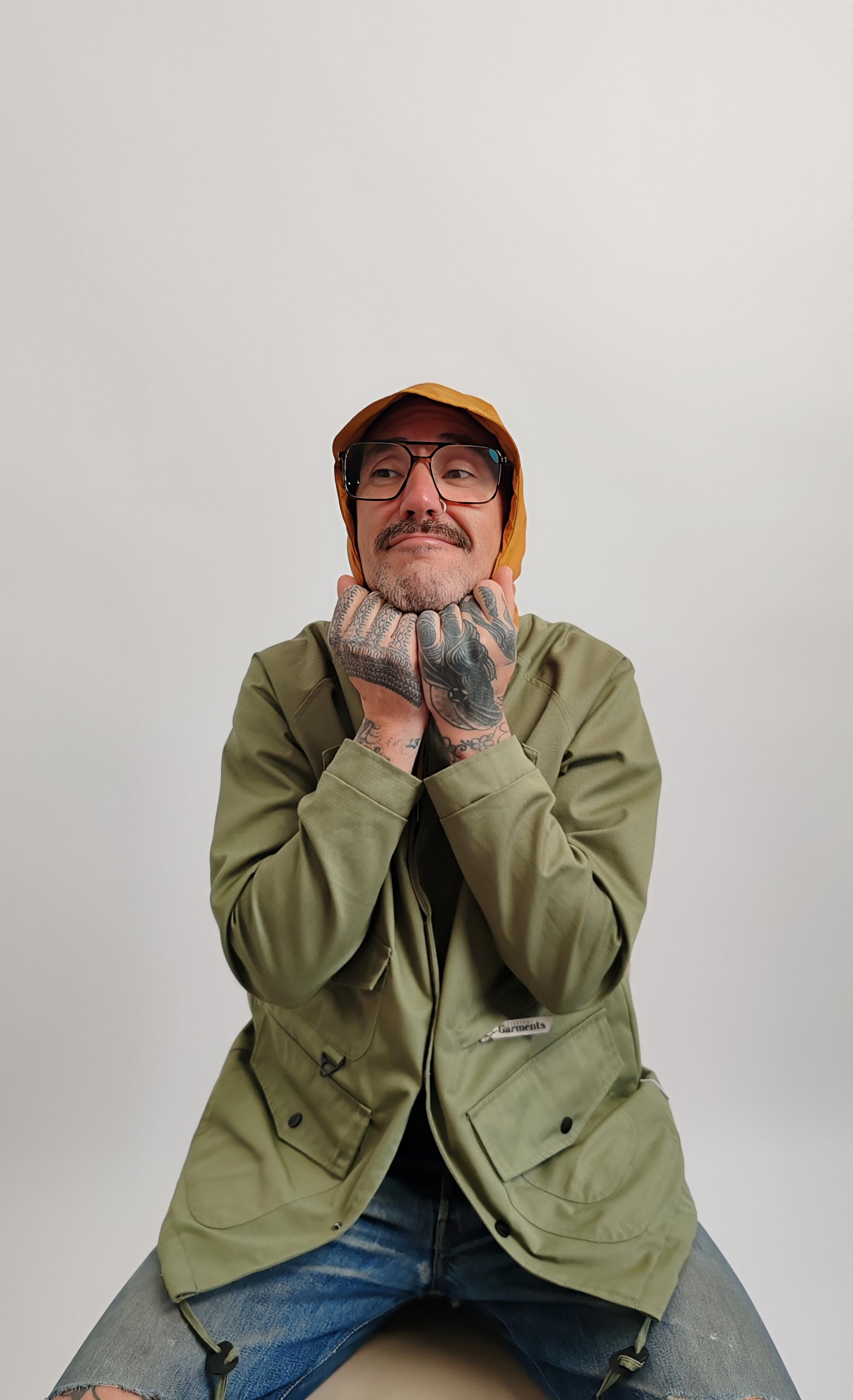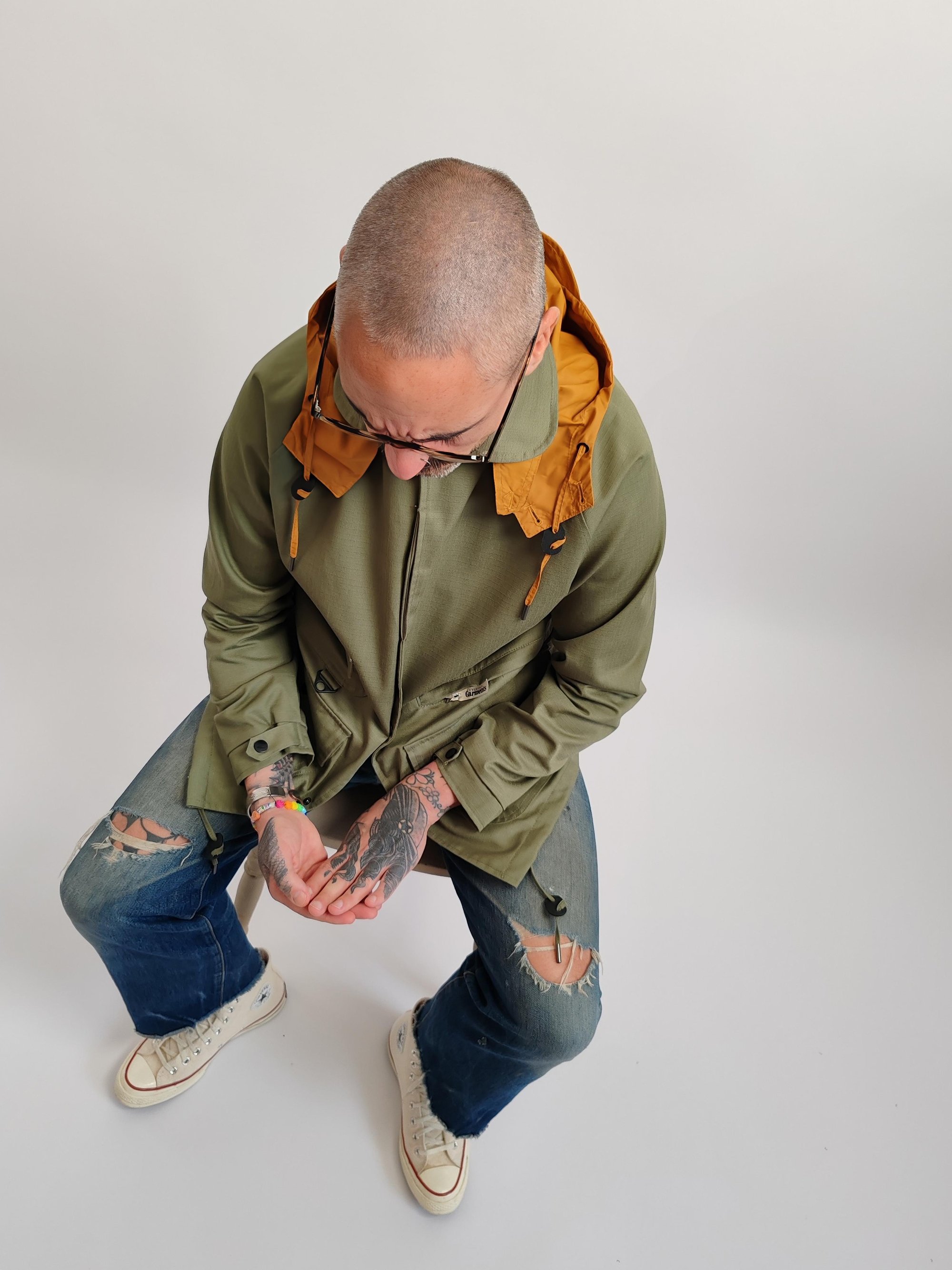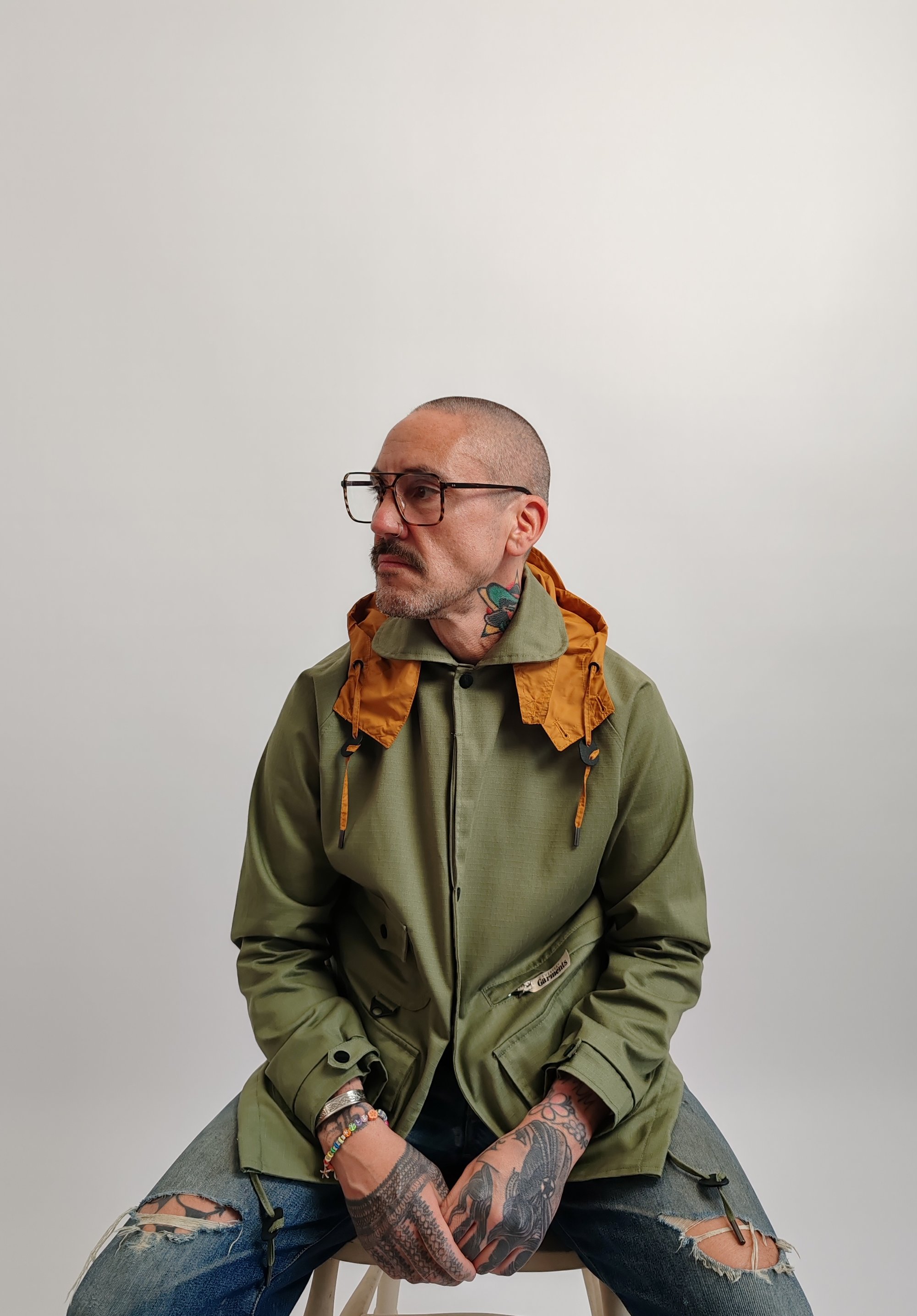 The jacket features 5 spacious front pockets—four at the waist 3 snap poppers, one zip closure with EG puller and one hidden chest pocket —offering practical storage for everyday essentials while reinforcing its rugged, structured silhouette. A concealed, fold-away hood is neatly tucked into the collar with zip closure, ready to be deployed when the weather turns or that cool look or easily stowed when not in use for a cleaner look.