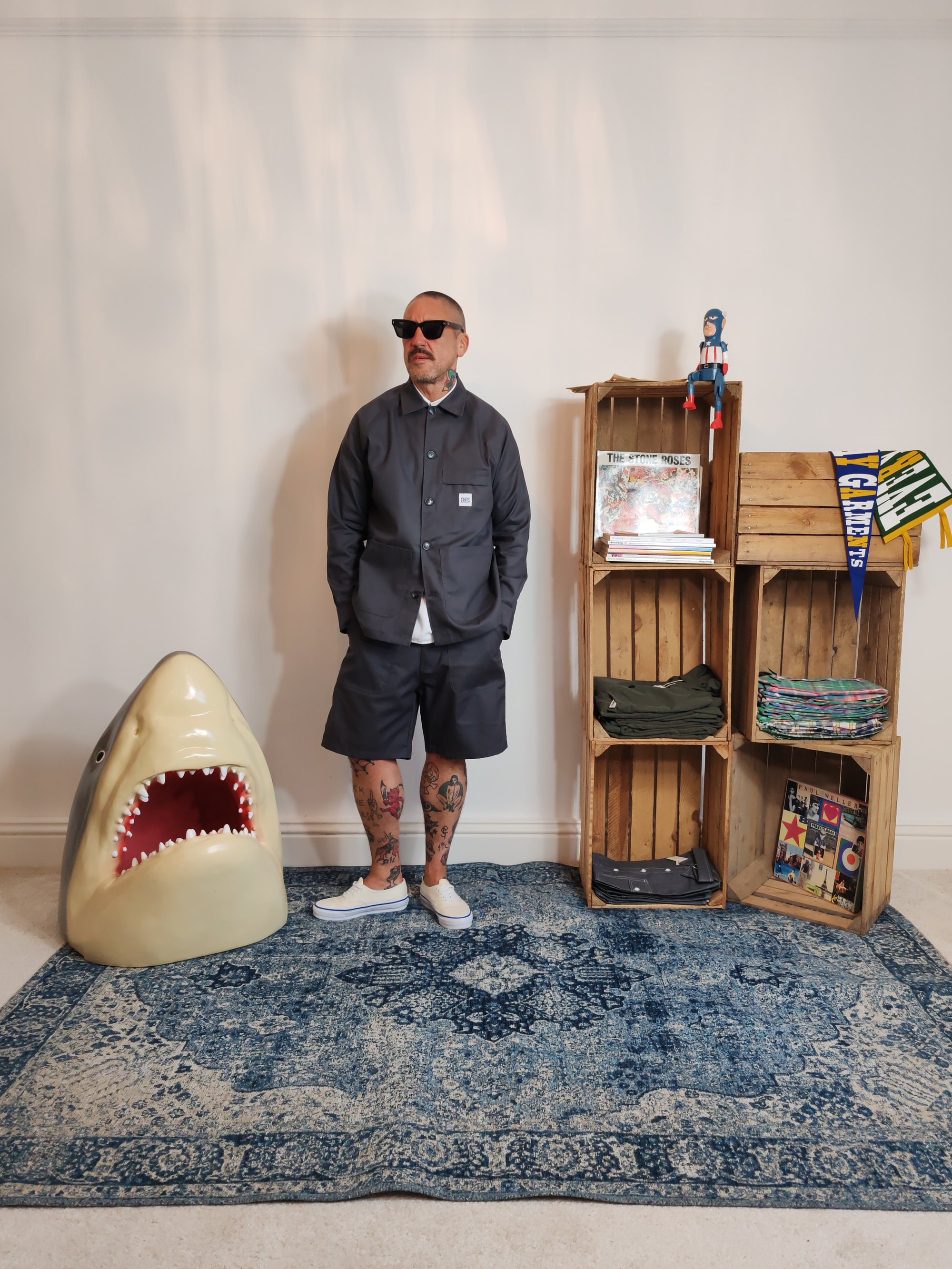 with a buttoned waist adjustable side, zip fly 4 pocket design with two hand pockets and two rear pockets.