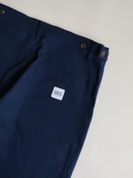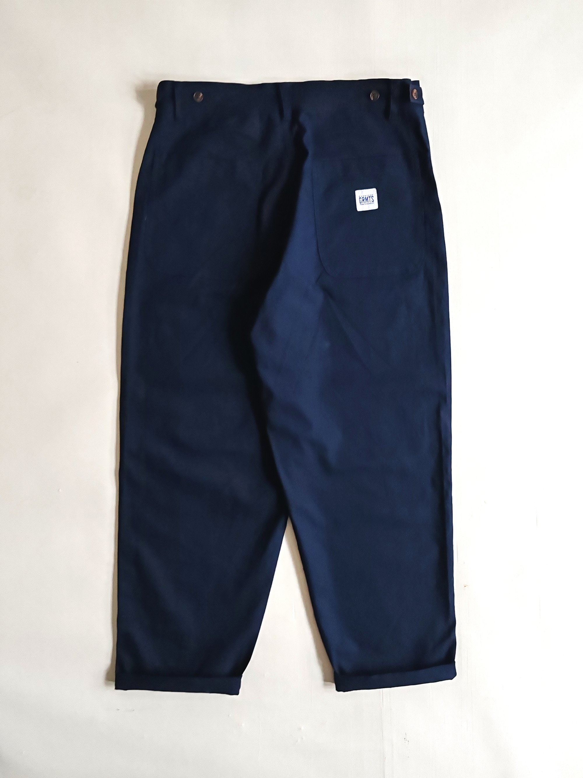 Denim trousers with a buttoned waist, zip fly 4 pocket design with two hand pockets and two rear pockets. Side adjustment
