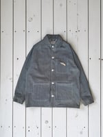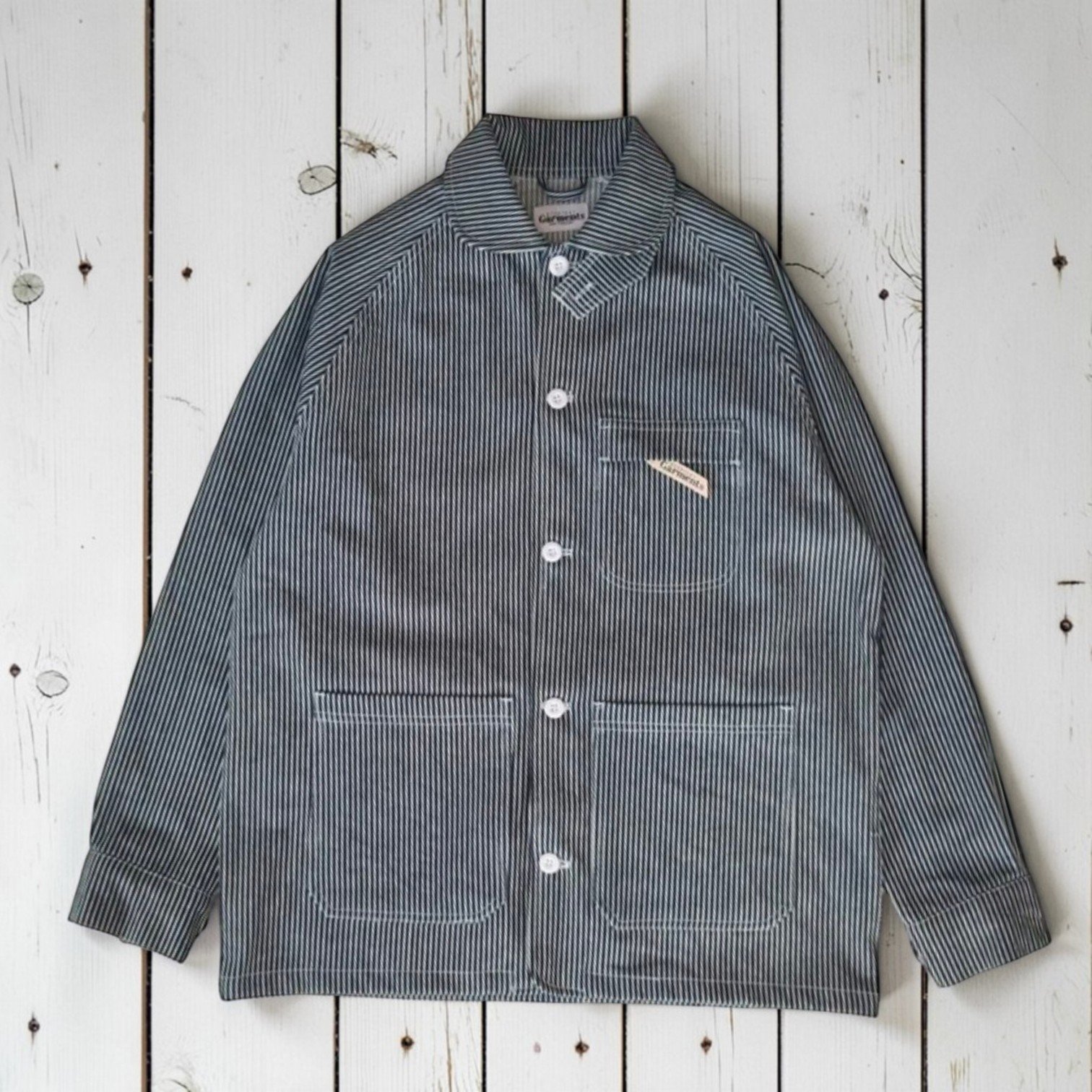 Everyday Garments SIMPLE Stripe Denim chore jackets with 3 front pockets / 1 Large zip closure ,Removable neck flap