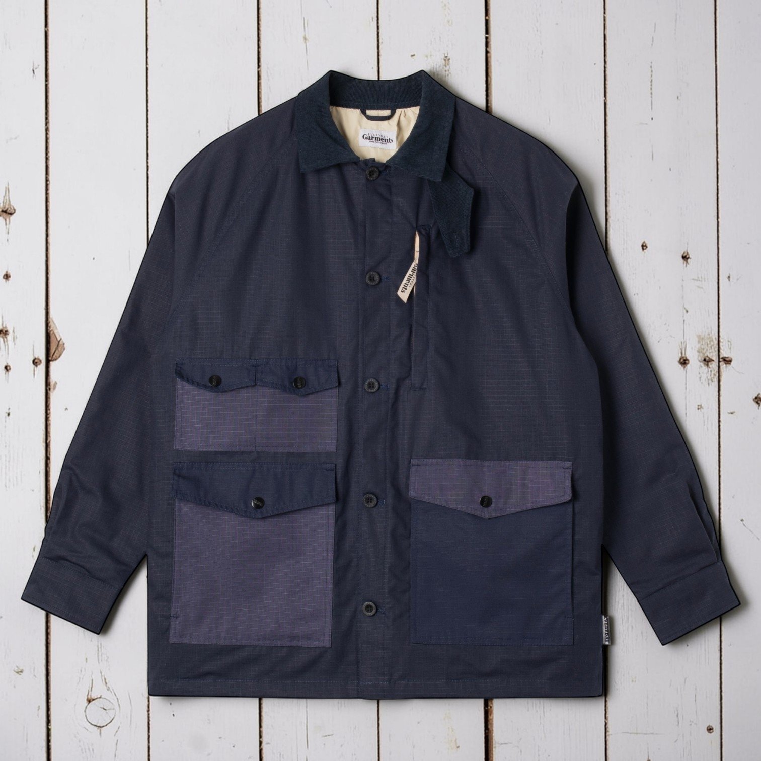Everyday Garments "Sydney" Coverall Named after my beautiful daughter and the reason I do this ....Made from Ripstop cotton and lining...With 5 front pockets ... EG Button front and EG popper pockets. Navy Cord collar and neck flap. And side adjustments