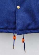 A refined take on a timeless silhouette. Crafted from wool for warmth and structure, this coach jacket blends classic sportswear heritage with elevated materials. A leather top fastener adds a distinctive luxury detail, while the four-popper front closure keeps the look clean and functional.
